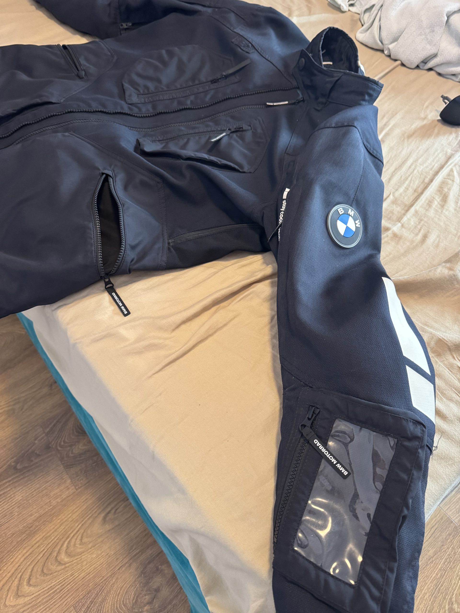 Jacket BMW GTX RALLYE, Goretex, size 60, φορεμένο περίπου 10 φορές, εξαιρετικής ποιότητας και φινιρίσματος, με εσωτερικές τιράντες μεταφοράς – κρεμάσματος στους ώμους, αγορασμένο από BMW ZENTRUM Μονάχου, (τιμή καινούργιου άνω των 1.500€), συνοδεύεται ως σετ από αδιάβροχο jacket GTX RALLYE.