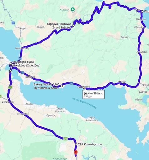 09:00 Αναχώρηση προς Ερέτρια και διαμέσου του επαρχιακού δικτύου προς Κύμη.